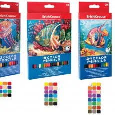 Creioane cu două culori diferite, la cele două capete, corp triunghiular, cu mina de diametrul de Ø 3,3 mm, de o calitate excelentă, rezistentă la rupere și ușor de ascuțit.12 creioane, 24 de culori